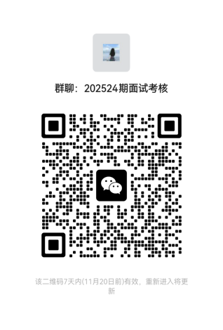 参加202524期面试考核人员,扫下方微信二维码进群并备注姓名,以便核实信息。