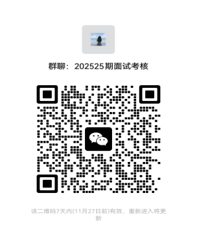 参加202525期面试考核人员,扫下方微信二维码进群并备注姓名,以便核实信息。